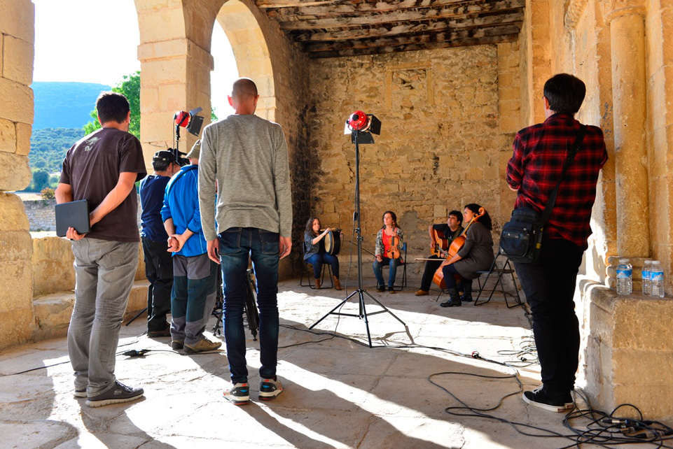 Grabación de un tema popular recogido por Antonio José e inspirado en el Cancionero de Olmeda con la coral del Orfeón Burgalés en el Monte de Estépar y en la capilla de las Bernardas en Burgos. 4 de diciembre de 2016.