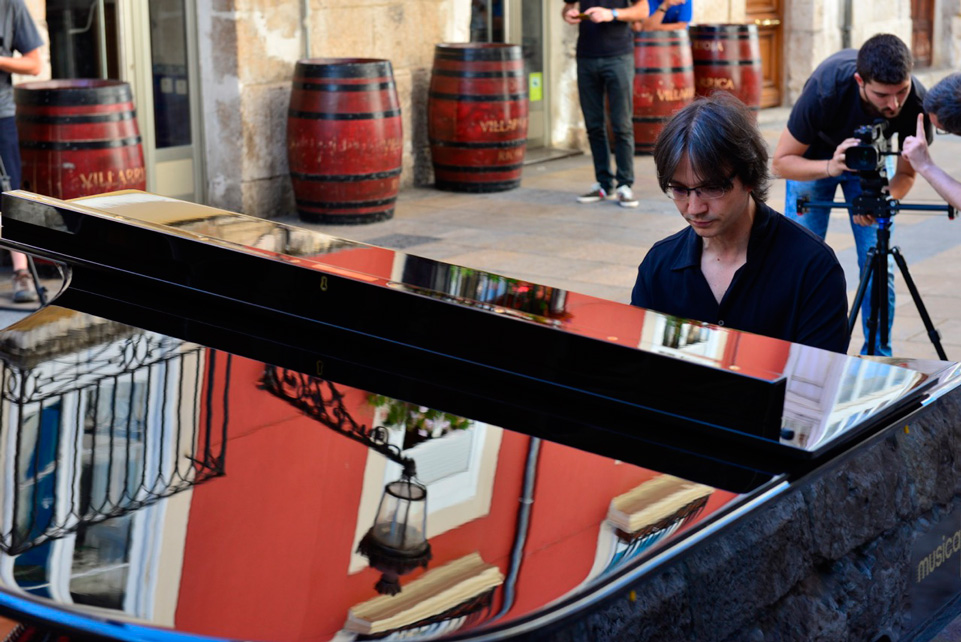 Rodaje de la interpretación al piano de José Abel en la calle S. Nicolás de Burgos. 2 de agosto de 2016.
